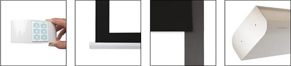 Kasety wykonane są w całości z aluminium. Każdy ekran wyposażony jest w kompletny zestaw montażowy, bezprzewodowe zintegrowane sterowanie radiowe oraz podręcznik użytkownika opisujący sposób instalacji.