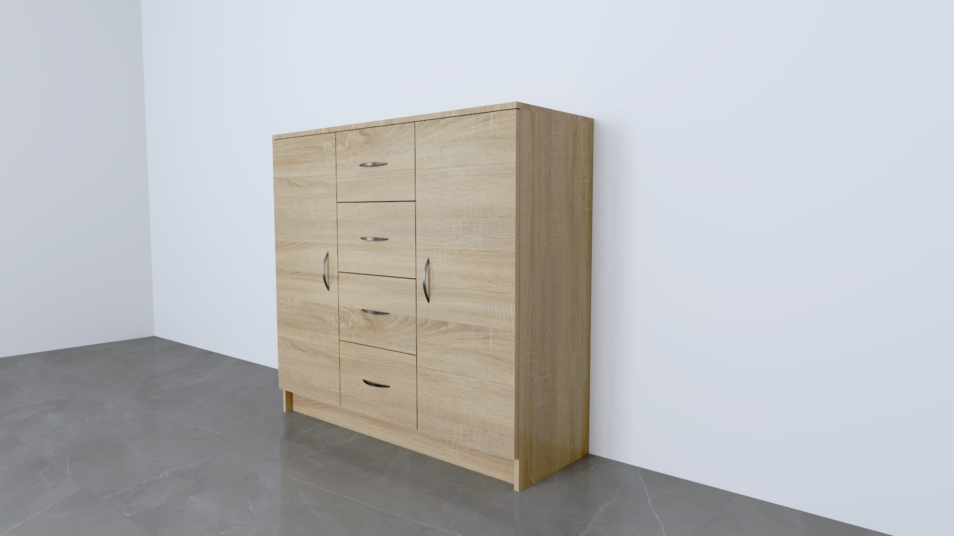 Komoda wykonana z płyty meblowej o grubości 18 mm; z szufladami i szafkami