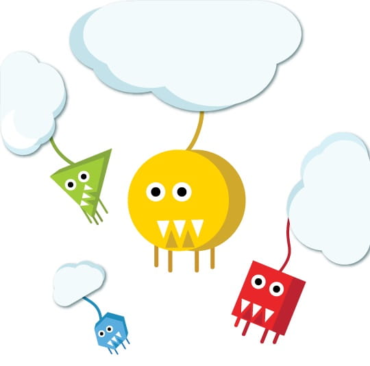 Pakiet zawiera szesnaście aplikacji interaktywnych, sterowanych ruchem. Bohaterami gier są cztery wesołe potworki - kształciaki, w czterech kolorach - żółtym, zielonym, niebieskim i czerownym, w czterech kształtach - koło, trójkąt, sześciokąt i kwadrat, żywiące się pasującymi do nich kształtami.