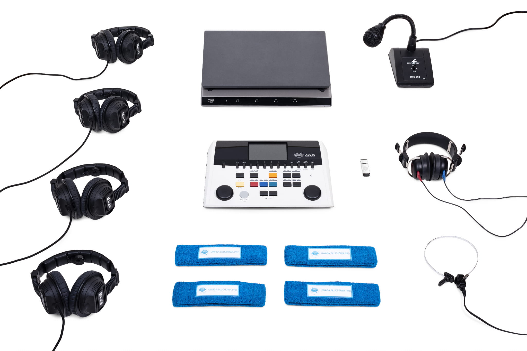 Kluczowym elementem zestawu jest moduł dźwiękowy – elektroniczne ucho, wspierany przez specjalistyczne oprogramowanie terapeutyczne oraz profesjonalny audiometr medyczny do diagnozy słuchowej. Dzięki temu możliwe jest przeprowadzenie pełnego procesu – od precyzyjnej diagnozy, przez interpretację wyników, po spersonalizowany trening słuchowy.