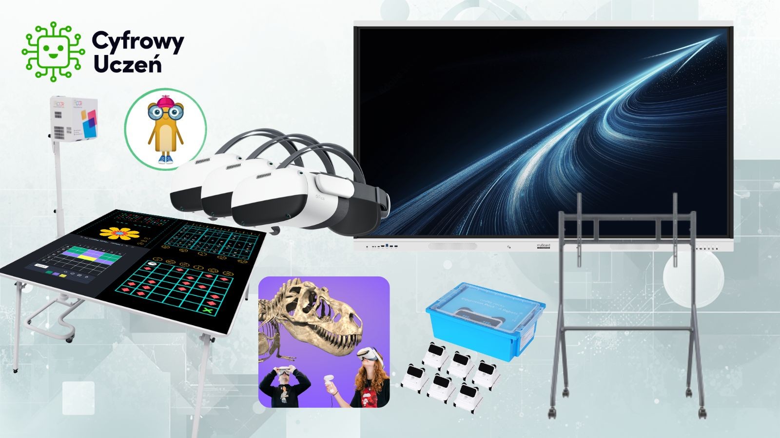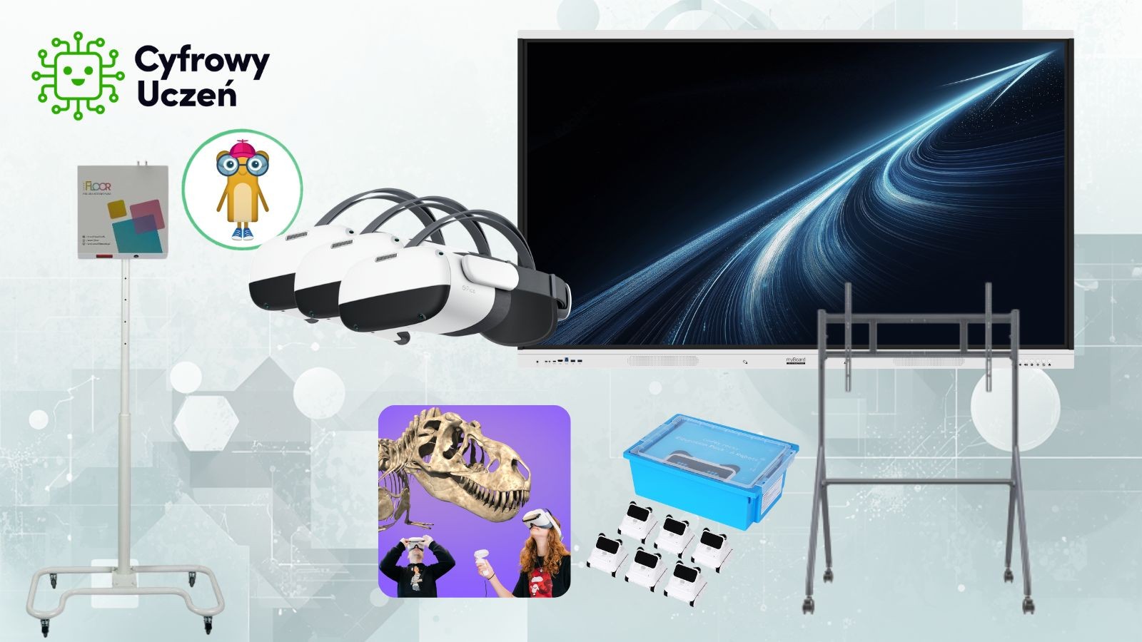 Nowoczesnym elementem zestawu jest również technologia wirtualnej rzeczywistości (VR). Trzy zestawy gogli PICO NEO 3 Plus z bezterminową licencją PICO Business Suite pozwalają prowadzić immersyjne zajęcia edukacyjne, w których uczniowie mogą doświadczać treści w sposób niedostępny w tradycyjnej klasie.
