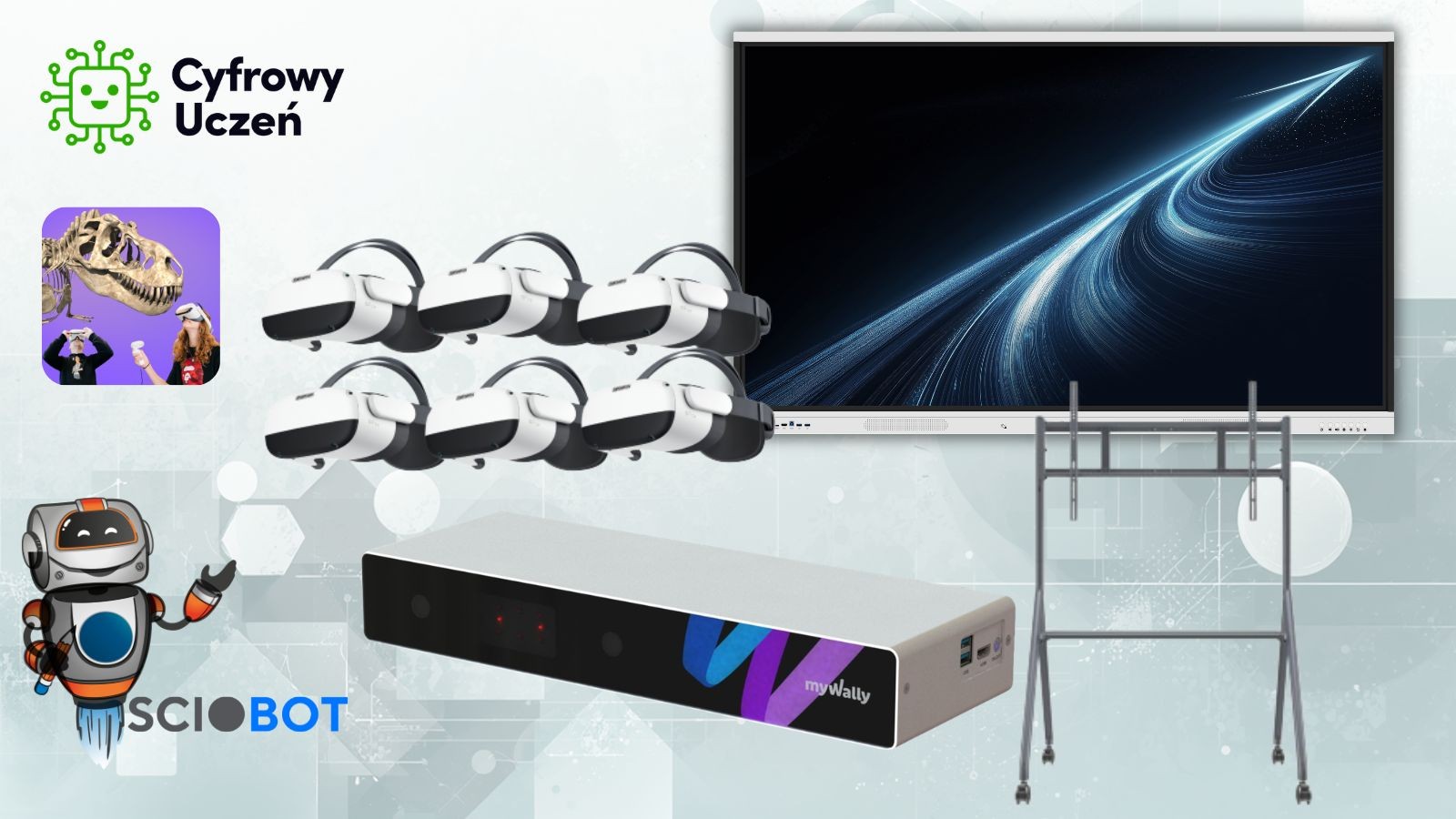Kluczowym elementem zestawu jest zestaw VR Pico Neo 3 dla 6 użytkowników, który umożliwia prowadzenie zajęć w wirtualnej rzeczywistości w większych grupach. Uczniowie mogą jednocześnie uczestniczyć w immersyjnych lekcjach, eksplorować środowiska 3D oraz doświadczać treści edukacyjnych w sposób niedostępny w tradycyjnej klasie.