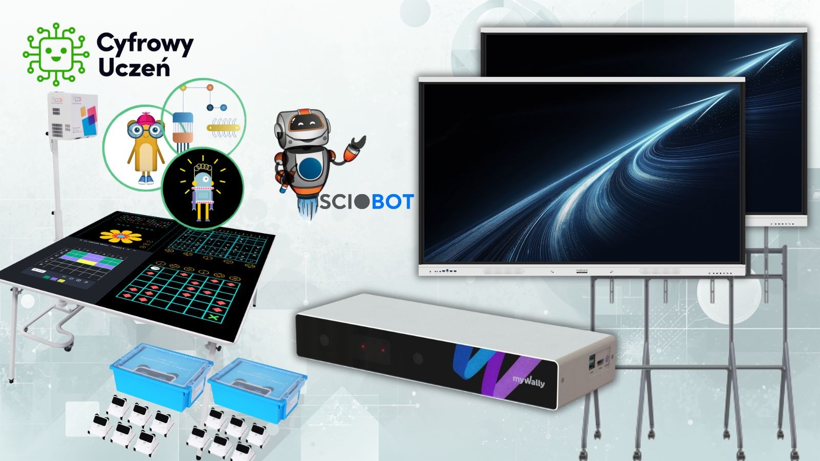 To rozwiązanie łączy w jednym środowisku interaktywne ekrany, robotykę, aktywność ruchową oraz nowoczesne aplikacje edukacyjne, umożliwiając prowadzenie zajęć w modelu STEAM na różnych poziomach edukacyjnych.