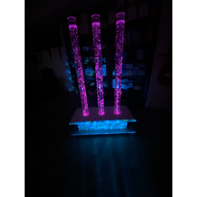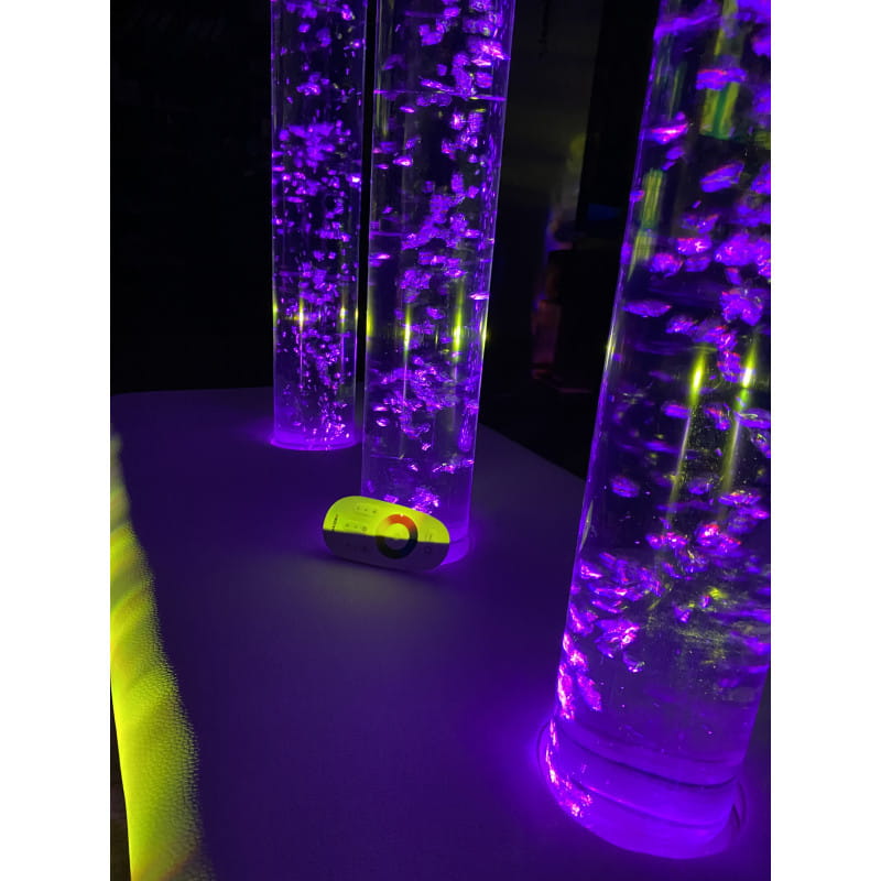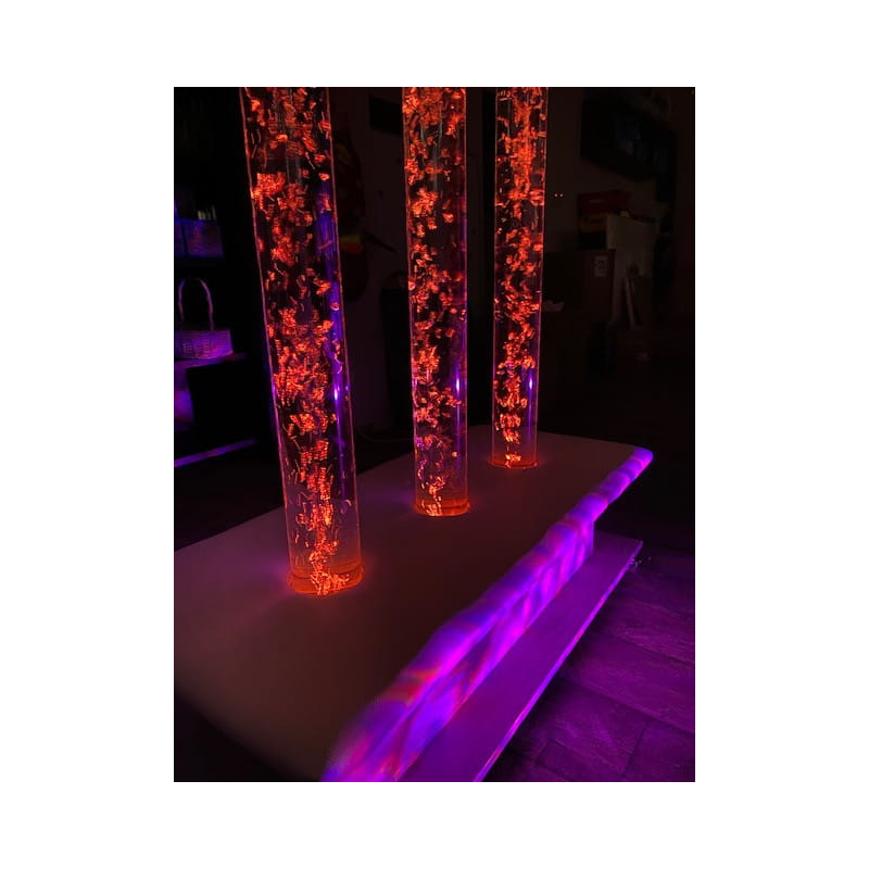 Zestaw trzech mobilnych kolumn wodnych z tapicerowaną nakładką o wymiarach 110x50x7cm, sterowanych za pomocą pilota.