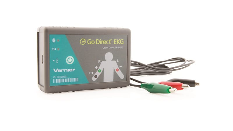 Czujnik Go Direct EKG mierzy aktywność elektryczną serca i sygnały elektryczne wytwarzane podczas skurczów mięśni. Opcje bezprzewodowe minimalizują ryzyko splątania kabli podczas eksperymentów. Czujnik ten zapewnia dwa oddzielne wyjścia: jeden zoptymalizowany pod kątem standardowego 3-przewodowego EKG i drugi zoptymalizowany pod względem powierzchniowych zapisów EMG. Nagrania EMG mogą być również automatycznie korygowane przez czujnik.