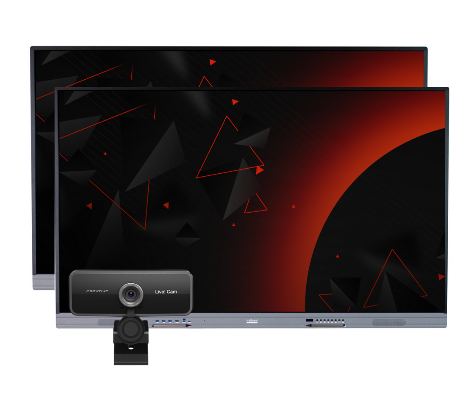 Zestaw interaktywny DUET 75" + CAM to propozycja dla szkół, spełniająca wymogi programu Aktywna Tablica. W skład zestawu wchodzą dwa monitory interaktywne myBoard oraz kamera Full HD.